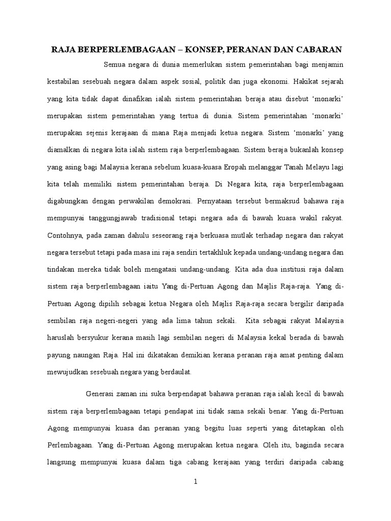 Contoh Karangan Raja Berperlembagaan